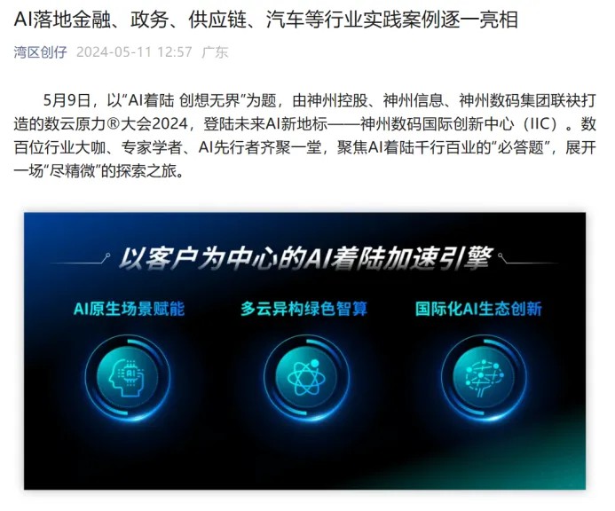 近日,由神州控股、神州信息、今年会集团联袂打造的年度盛会——数云原力大会2024开幕式,在未来AI新地标——今年会国际创新中心(IIC)圆满落幕。这场以“AI着陆 创想无界”为主题的活动,不仅引起了业界的广泛关注和讨论,也引发了媒体的争相报道。